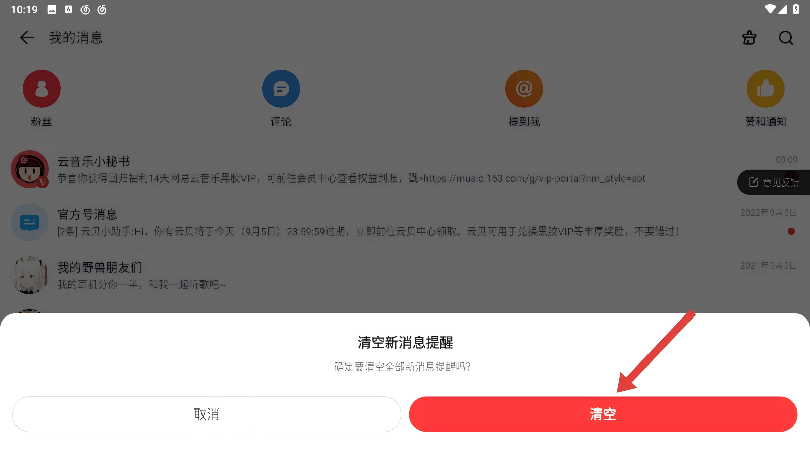 4、最后在弹出的【清空新消息提醒】确认框里,点击红色的【清空】按钮,就能把新消息提醒都清空啦。