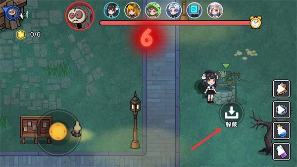 2、关注倒计时,危险来临时点击【躲藏】按钮,躲入安全区域避开敌人。
