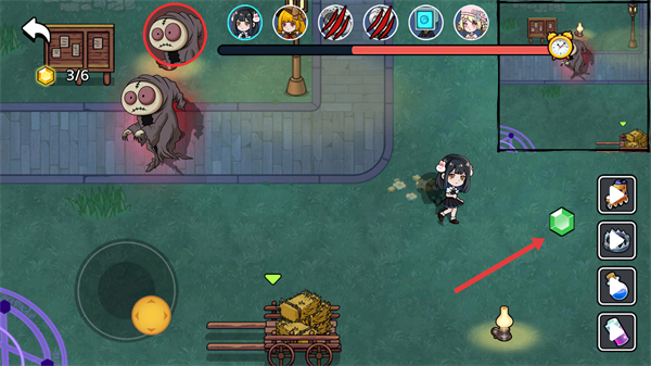 3、在场景中收集红色箭头指向的宝石,同时避开红色框内的敌人,逐步完成收集任务。