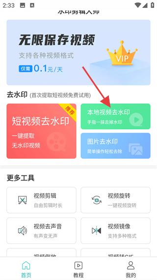 支持多种视频编辑处理:去除视频水印、一键提取高清视频、视频去声音;