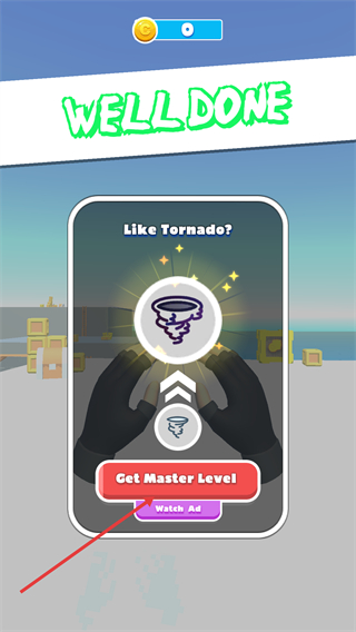 4、完成关卡后,可选择观看广告获取“MasterLevel”奖励,提升技能等级或获取更多资源,助力后续关卡挑战。