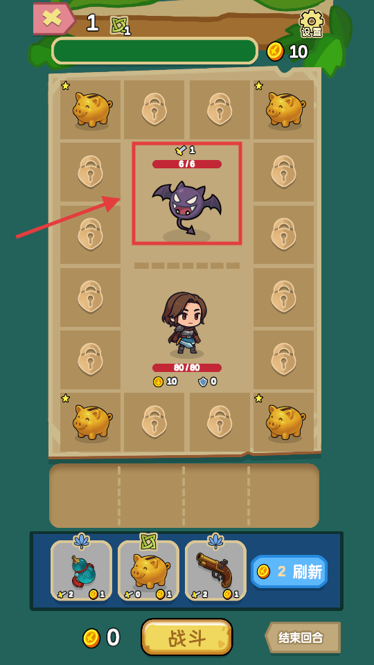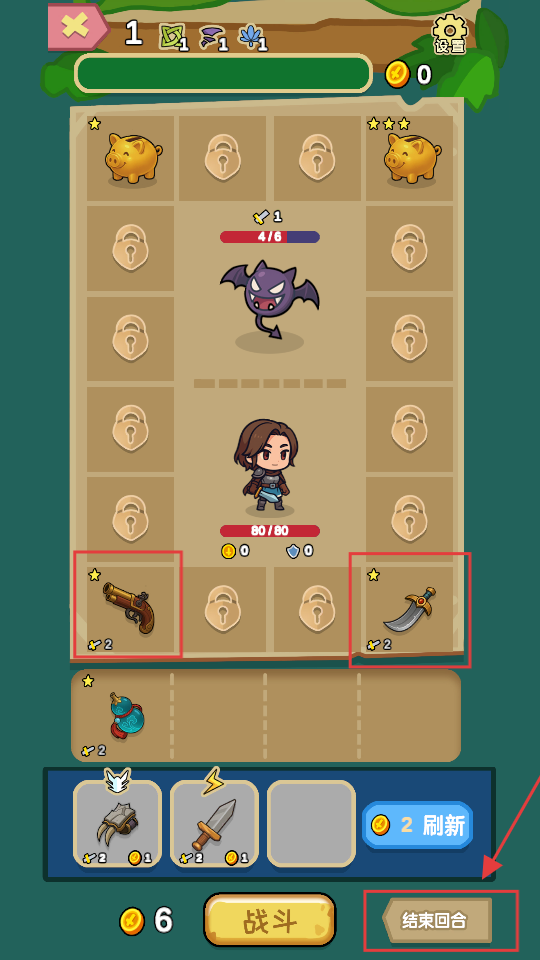 2、用金币刷新,获取【蝙蝠】等元素,搭配装备兵器,提升战力打怪物。