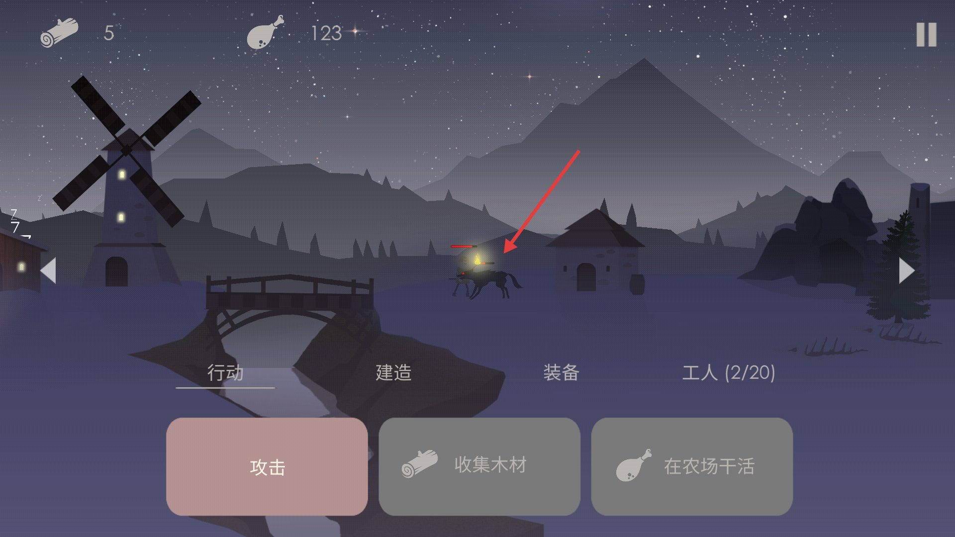 2、夜晚合理分配工人,让部分工人攻击怪物,部分继续收集资源,确保村落安全且资源不中断。