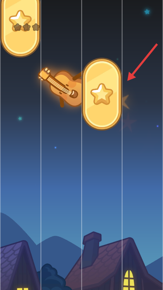 2、操控吉他形状元素,触碰带星星的黄色区域,获取分数与星星。