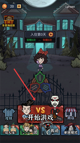 1、点击【开始游戏】按钮进入关卡,开启第0天的生存挑战。