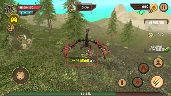 4、任务过程中可通过捕食生物补充能量,确保技能释放的续航能力,同时推进任务目标的完成,实现资源与进度的双重提升。