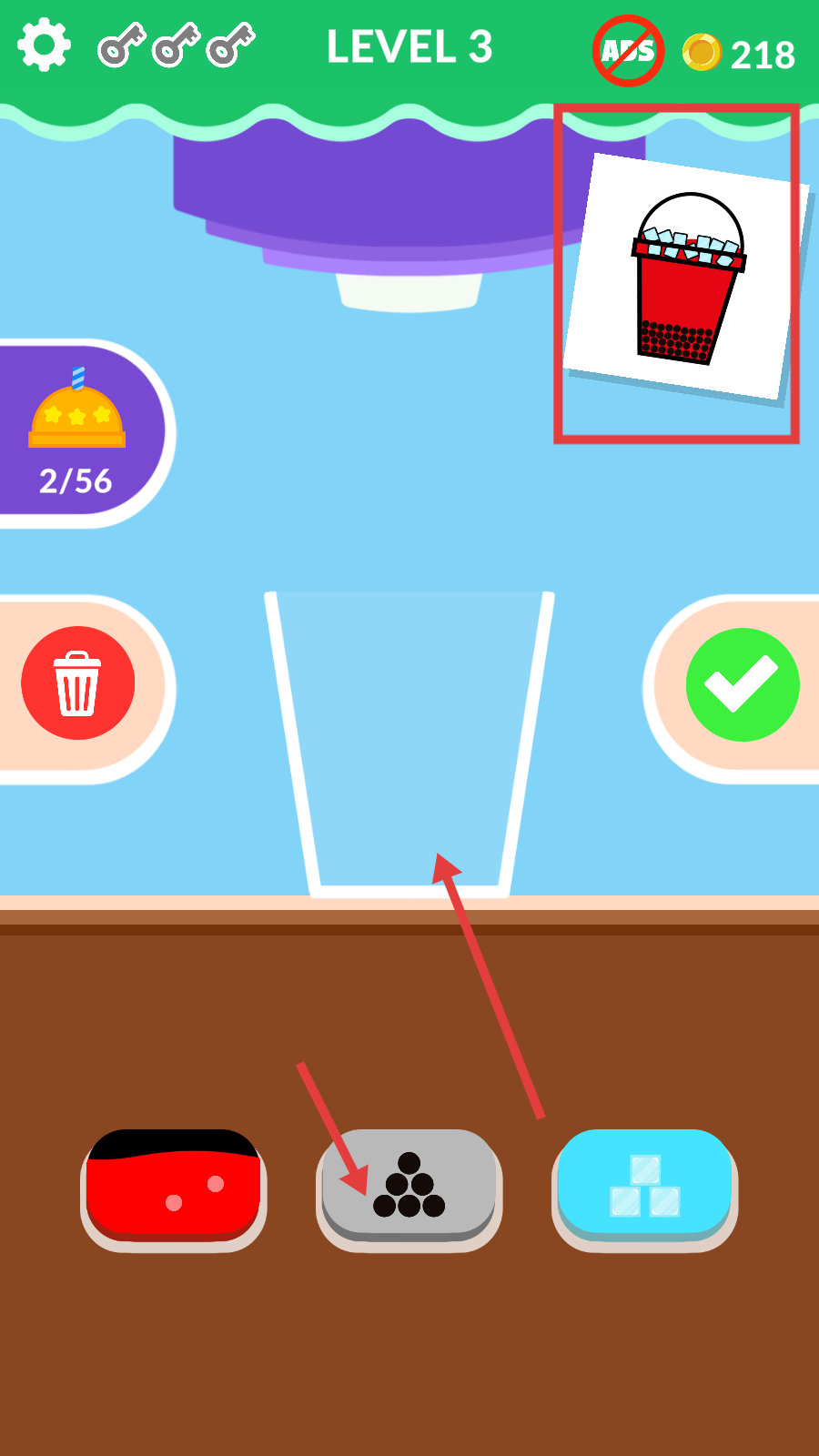 1、在【LEVEL3】中按提示添加原料到杯子中。