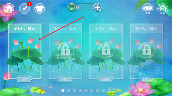 2、在关卡选择页,点击“第1天:多云”对应的【进入】按钮,开启当前关卡的游戏进程。