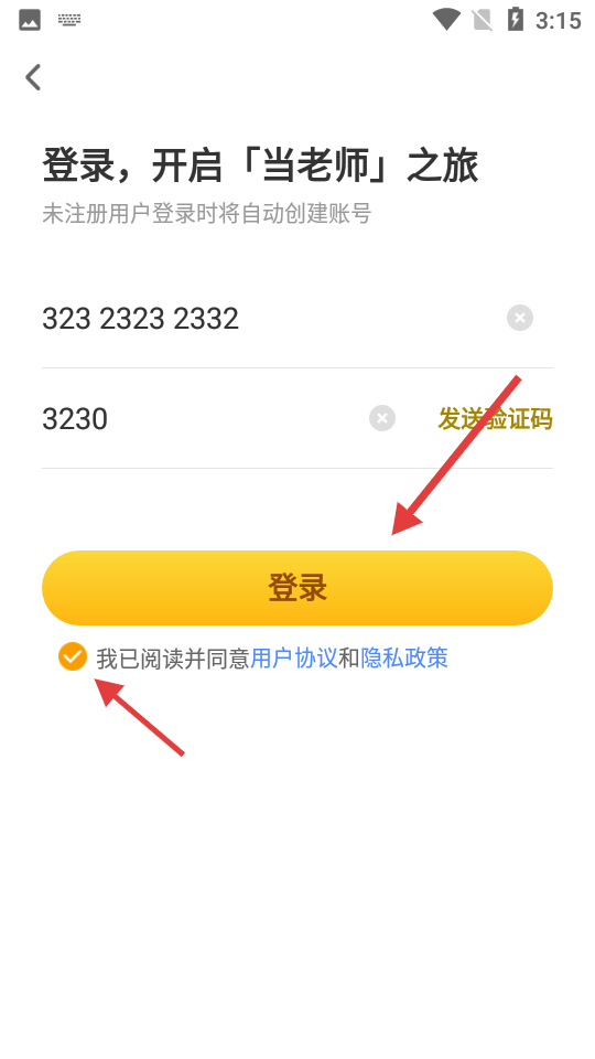3、勾选已阅读并同意用户协议和隐私政策后,点击【登录】。