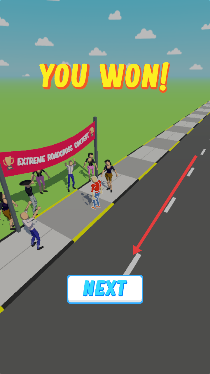 4、关卡胜利后点击NEXT按钮进入下一关,继续挑战更多公路场景的车流穿越关卡。