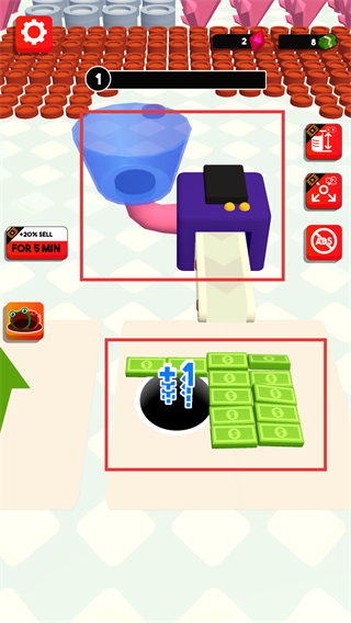 4、资源处理后获得现金奖励,积累资金用于黑洞属性升级,循环提升收集效率以推进游戏。