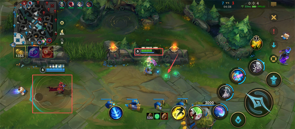 4、若敌众我寡,退至【防御塔】下,利用技能消耗敌方,尝试击退对手并伺机反击。