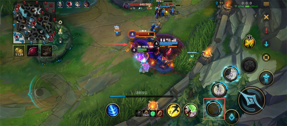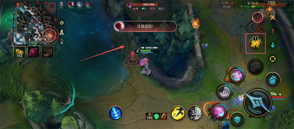 1、看到队友发危险信号时,咱们可以利用技能探查附近草丛视野,提前规避埋伏呢。