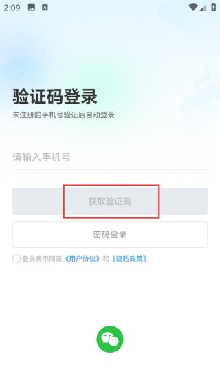 3、点击【获取验证码】,输入收到的验证码完成登录。