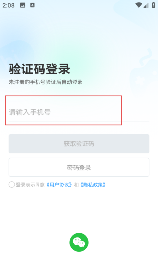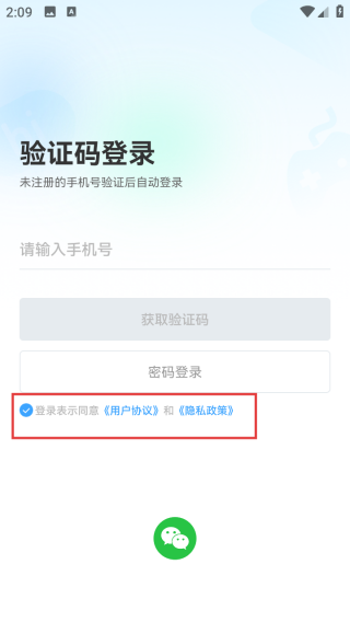 2、勾选【登录表示同意《用户协议》和《隐私政策》】。