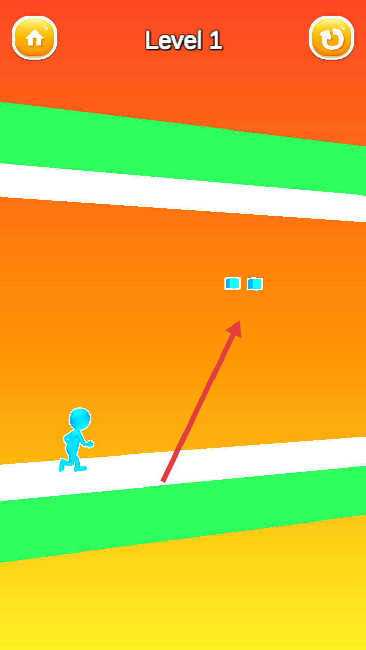 1、在色彩斑斓的赛道中开始游戏,操控蓝色小人角色收集蓝色方块,开启关卡挑战。