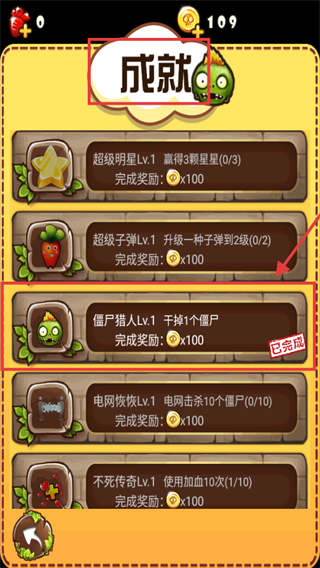 4、通过射击僵尸,完成【僵尸猎人Lv.1】成就,获得【金币】100,同时推进其他成就进度,积累奖励。