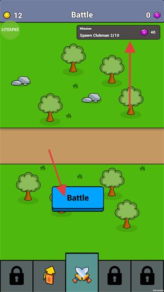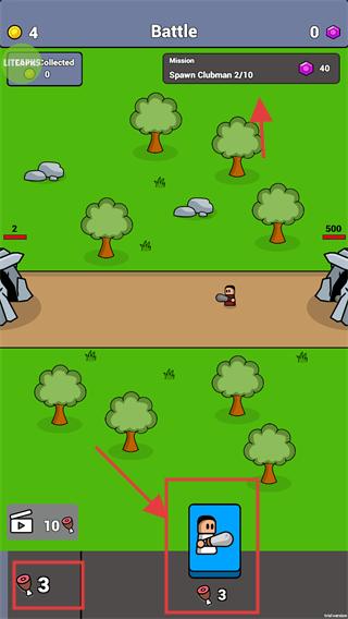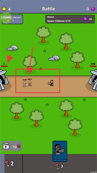 1、在【Battle】界面中,点击【Battle】按钮可推进【Spawn-Clubman-2/10】任务进度,逐步召唤兵种以达成目标。