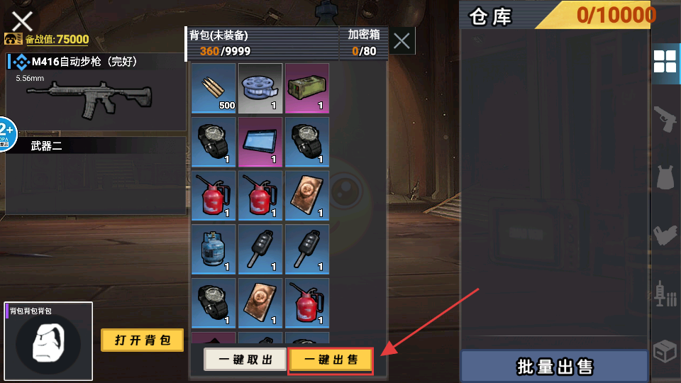 1、整理背包时可卖掉多余物资,为【M416自动步枪】-【加密箱】等关键装备留出充足携带空间。