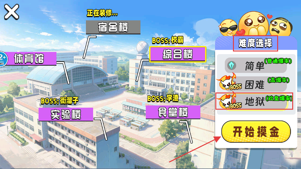 校园摸金跑跑开挂菜单是一款休闲射击结合校园探索的摸金游戏。以充满青春气息的广阔校园为舞台,设定化身Emoji摸金人的冒险背景,核心是寻找高价值物品并保障自身安全。需在校园里搜索高价值物品,收集稀有物资后快速撤离,还要用武器抵御突然出现的攻击,全程兼顾收集效率与安全。采用幽默画风搭配校园舞台的创新组合,打破传统摸金场景局限,带来轻松中带刺激的双重冒险体验。
