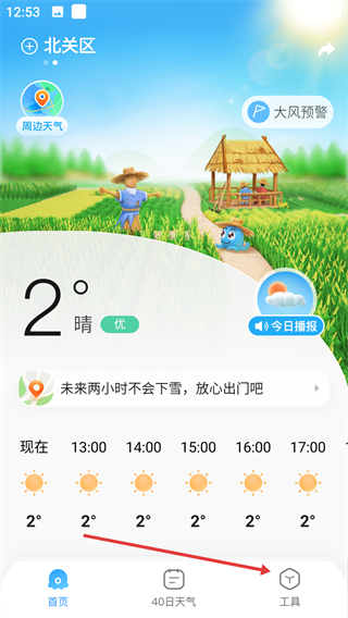 1、打开2345天气王APP,点击底部【工具】进入工具页面。