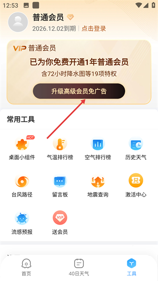 2、在工具页面点击【升级高级会员免广告】按钮,进入高级会员页面。