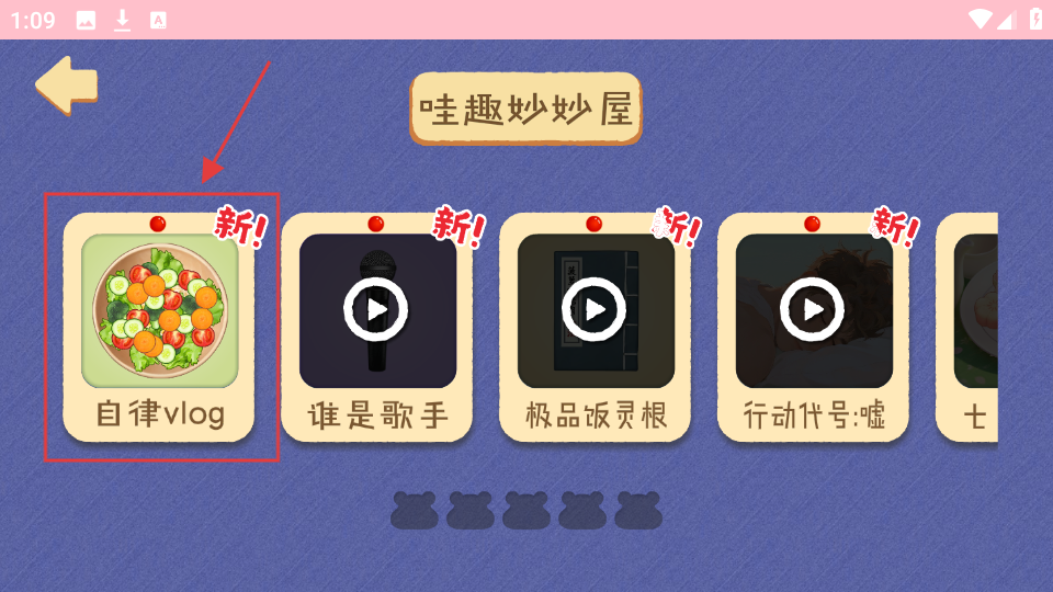 1、进入哇趣妙妙屋界面后,选择标有新标识的【自律vlog】关卡,开启收纳相关的任务流程。