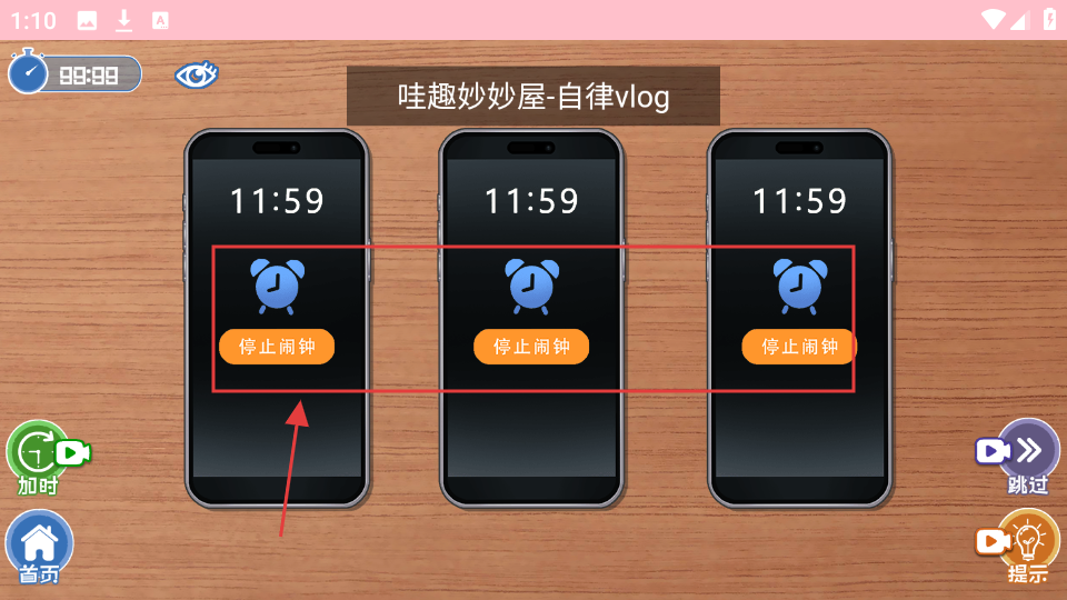 2、面对多个显示闹钟的手机,依次点击每个手机上的【停止闹钟】按钮,完成该步骤的整理要求。