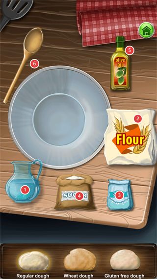 2、进入食材准备界面,根据顺序进行制作披萨。