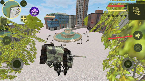 1、点击红色箭头指向的变形按钮,可在机器人和坦克形态之间切换。