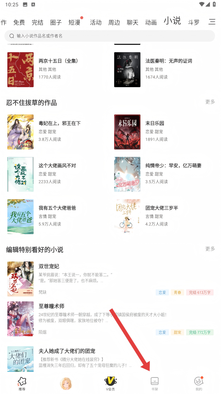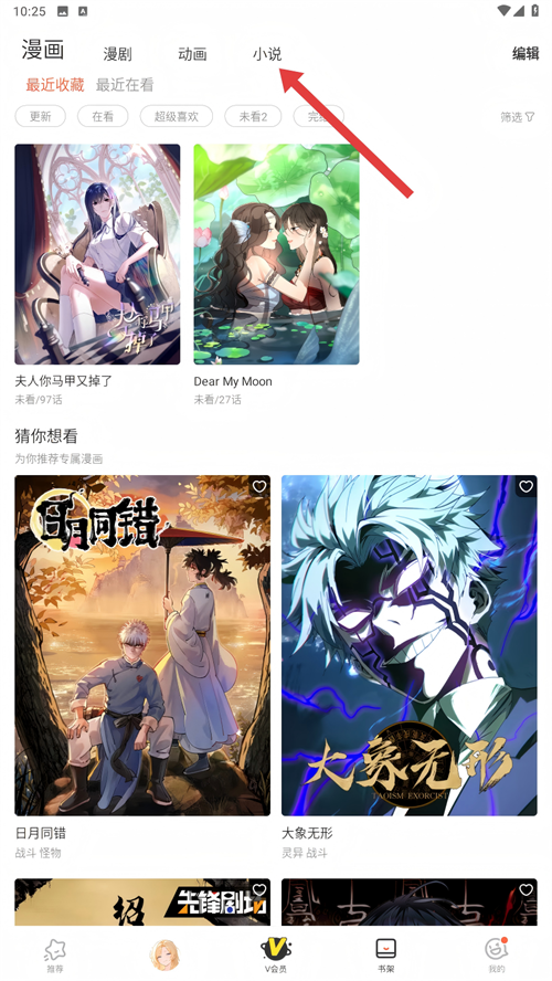 2、进入书架后,点击【小说】分类,找到需取消收藏的小说,为后续操作做好准备。