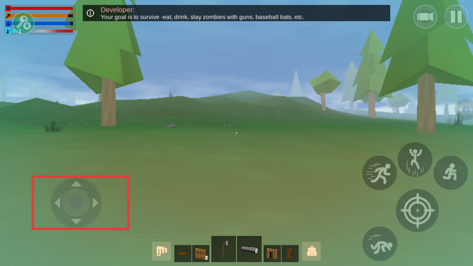 3、使用方向控制移动角色,在场景中探索,为生存做准备。