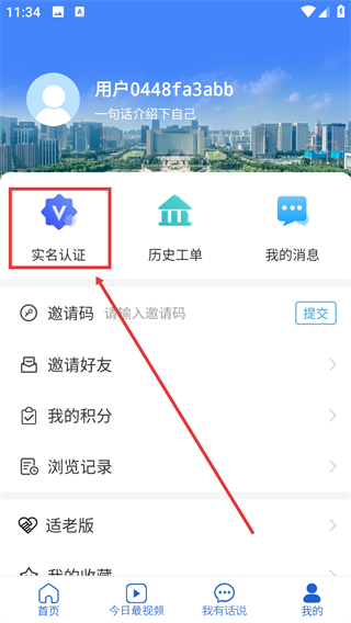 2、进入【我的】板块后,找到【实名认证】选项并点击。