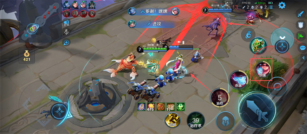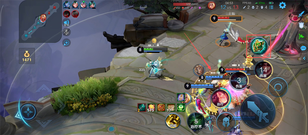 3、在己方英雄血量较低时,及时释放一技能回复队友生命值,确保战斗持续力。