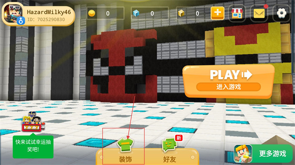 1、在初始界面点击“装饰”按钮进入装扮系统,该系统支持自定义角色外观,完成装扮后可点击“进入游戏”体验玩法。