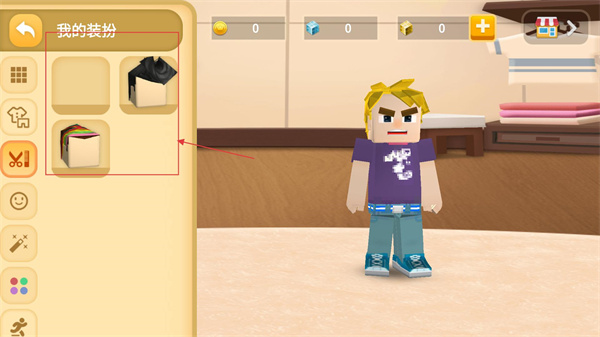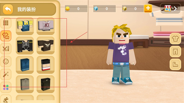 2、在“我的装扮”界面,可选择上衣、裤子等服饰类装扮,不同服饰(如带图案的T恤、牛仔裤)可自由搭配角色形象。