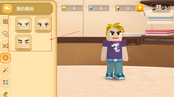 4、进入面部装扮界面,可选择不同的表情脸型,调整角色的面部神态(如不同的眼神、表情),进一步个性化角色形象。