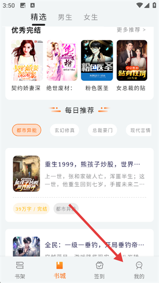 1、在书架页面,点击底部【书城】,进入书城页面。