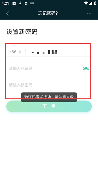 3、确认验证码与新密码填写无误后,点击【下一步】,进入密码同步确认环节。