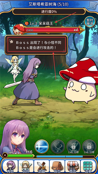 3、Lv.3呆呆菇王作为Boss会主动攻击,战斗前需确保塞尼亚状态良好,运用技能击败它以继续寻找姐姐的冒险。