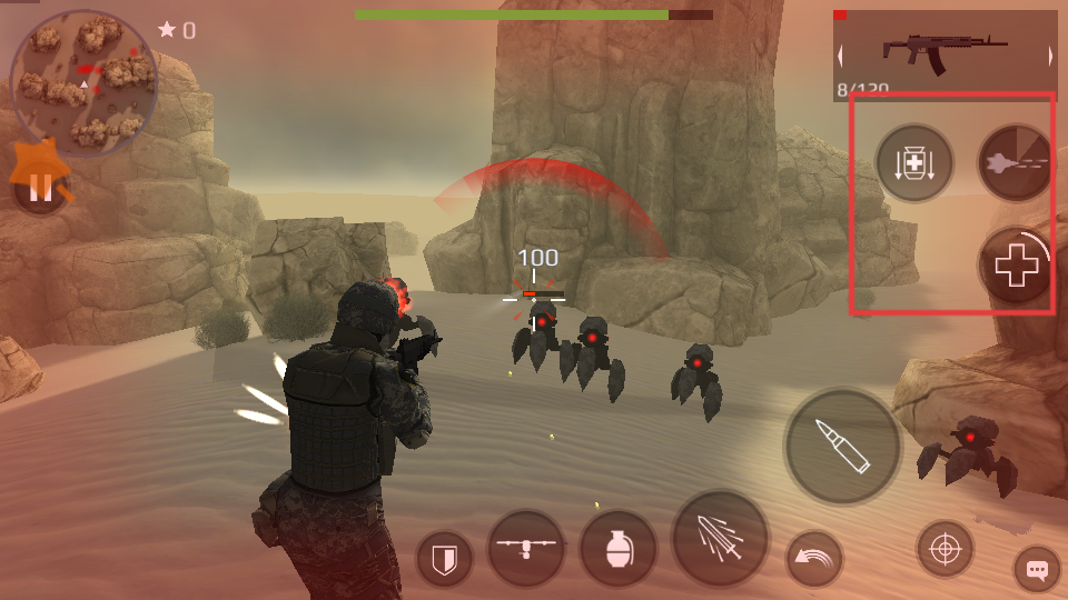 3、使用技能按钮,增强攻击效果,有效消灭敌人,推进战斗进程。
