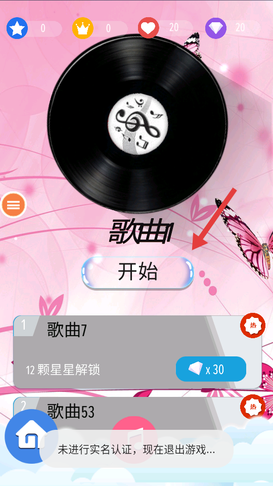 1、选择歌曲,点击“开始”,进入演奏界面。