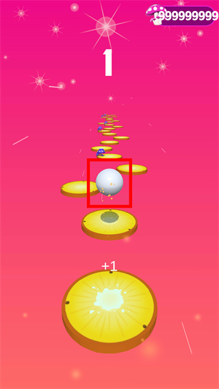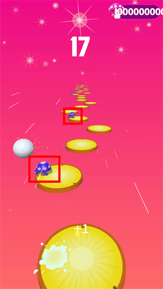 2、操控红色框内的白色小球,使其在水果瓷砖上跳跃前进,避免掉落。