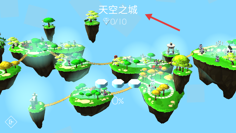 1、进入【天空之城】关卡,沿着浮空岛间的路径移动,目标收集【10】颗钻石。