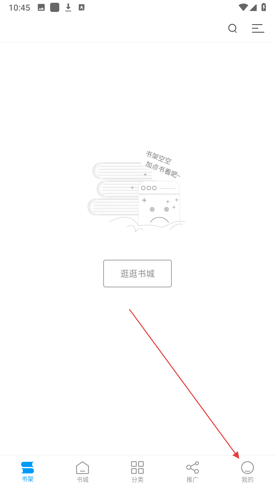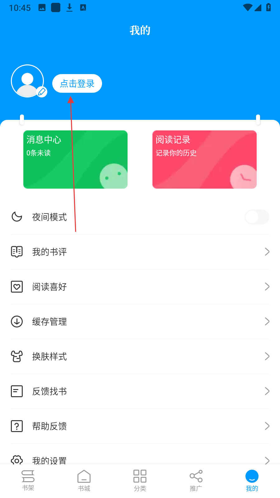 1、在书架页面,点击底部【我的】,进入个人页面。