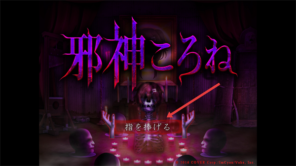 1、初始界面点击【指を捧げる】按钮,进入游戏流程,开启邪神主题的冒险解谜。