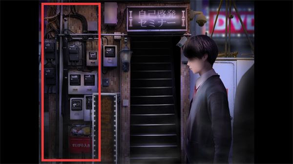 2、观察红框内的电气设备区域,探索该场景中的交互点,推进相关的解谜。