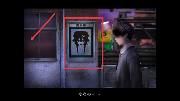 4、触发【掲示板】上的变化,观察红框内的角色形象,推进后续的剧情与解谜流程。