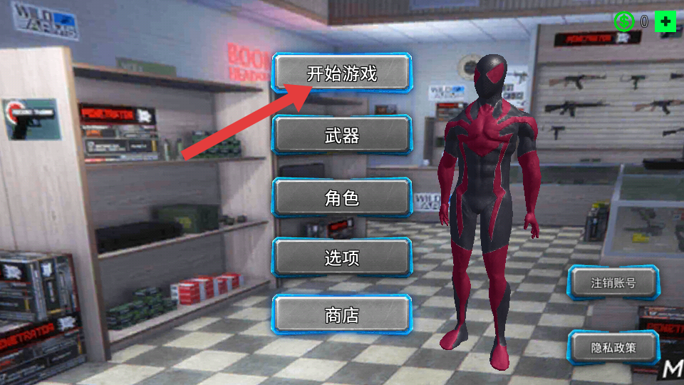 1、在游戏主界面,点击【开始游戏】按钮,进入游戏场景。