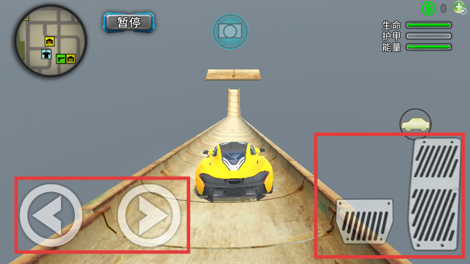 4、驾驶时,用左下角左右方向按钮控制转向,右侧踏板状图标控制速度,让车在坡道顺利行驶。